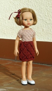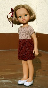 Velkými oklikami jsem se dopracovala k tvoření pro Paolky. Tyhle panenky se mi sice líbily už dlouho, jak jsem psala jinde měla jsem je doma asi 8 let, ale nic jsem jim neušila. A najednou mě to chytlo. Nejen, že jsem pro ně začala trořit oblečení, ale dokonce jsem si pořídila pár nových. Trochu jsem tápala s velikostí a tak jsou jedny šaty větší pro Vestidu a jedny vyšly i pro Berjuan. Šatičky jsou z mé oblíbené Alize Diva |