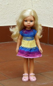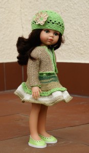 Na techto modelech jsem zkoušela různé zbůsoby rozšiřování sukní a také háčkované aplikace na čepičky.